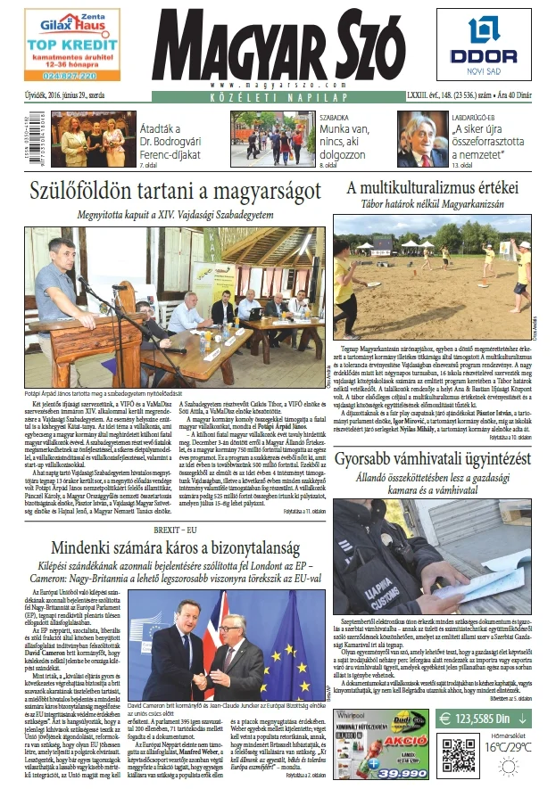 Magyar Szó, 73. évf. 2016. június 29. 148. sz. 1–16. oldal