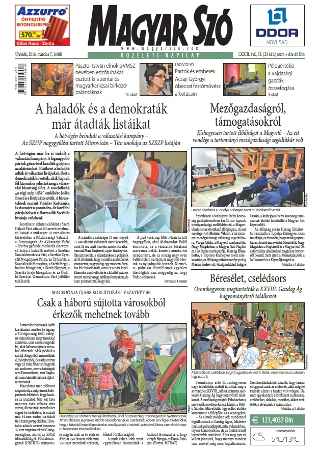 Magyar Szó, 73. évf. 2016. március 7. 53. sz. 1–20. oldal