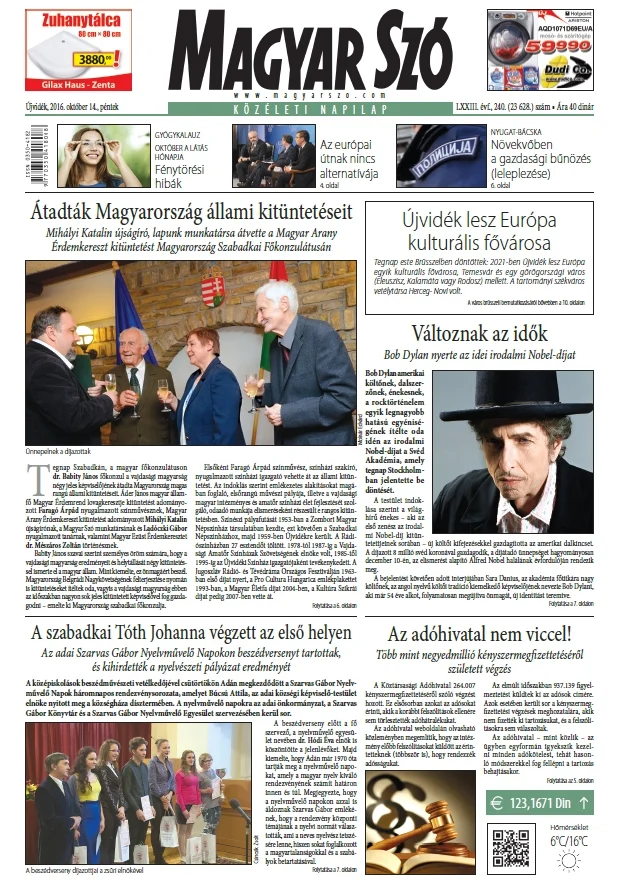 Magyar Szó, 73. évf. 2016. október 14. 240. sz. 1–16. oldal