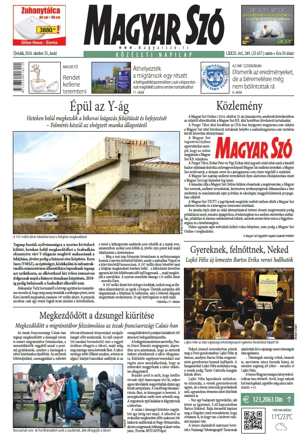 Magyar Szó, 73. évf. 2016. október 25. 249. sz. 1–20. oldal
