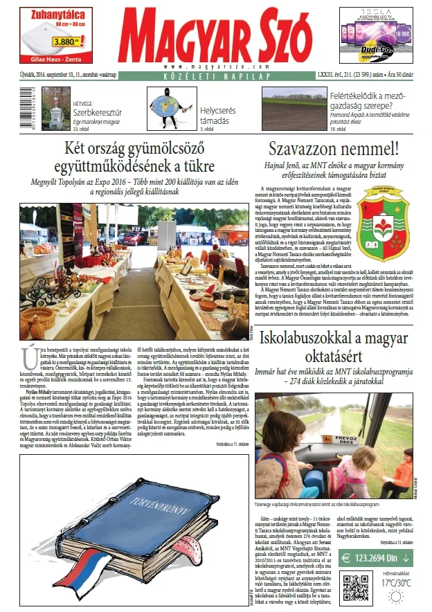 Magyar Szó, 73. évf. 2016. szeptember 10. – 11. 211. sz. 1–48. oldal