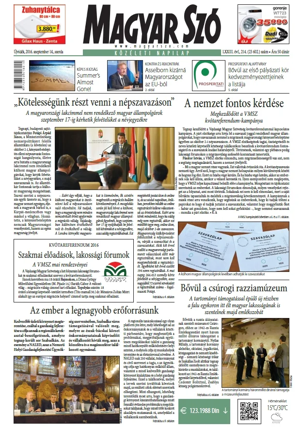 Magyar Szó, 73. évf. 2016. szeptember 14. 214. sz. 1–16. oldal