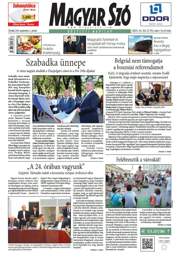 Magyar Szó, 73. évf. 2016. szeptember 2. 204. sz. 1–16. oldal