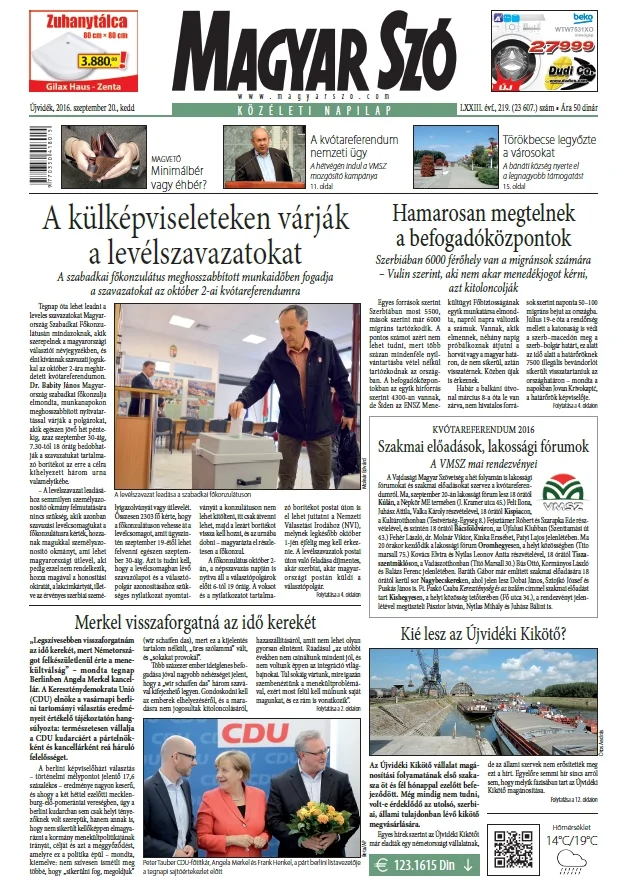 Magyar Szó, 73. évf. 2016. szeptember 20. 219. sz. 1–20. oldal