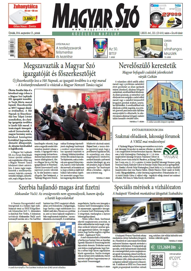 Magyar Szó, 73. évf. 2016. szeptember 23. 222. sz. 1–16. oldal