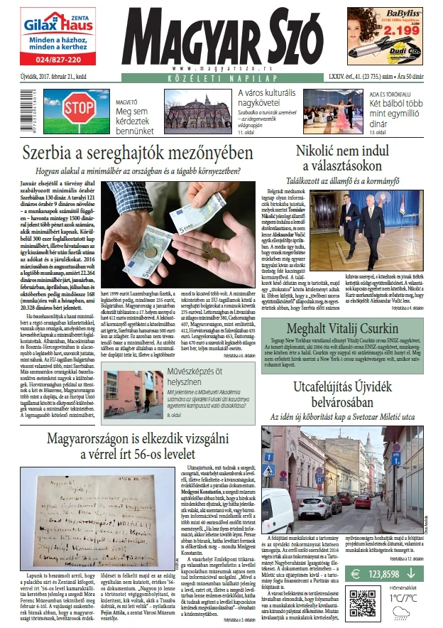 Magyar Szó, 74. évf. 2017. február 21. 41. sz. 1–20. oldal