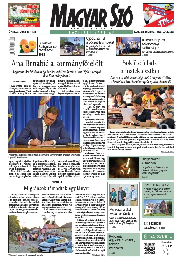 Magyar Szó, 74. évf. 2017. június 16. 137. sz. 1–16. oldal