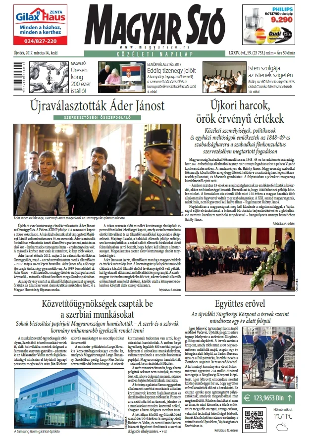 Magyar Szó, 74. évf. 2017. március 14. 59. sz. 1–16. oldal