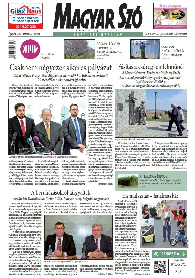 Magyar Szó, 74. évf. 2017. március 22. 66. sz. 1–20. oldal
