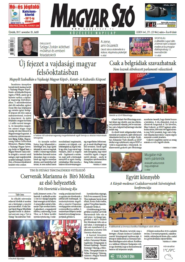 Magyar Szó, 74. évf. 2017. november 20. 271. sz. 1. oldal