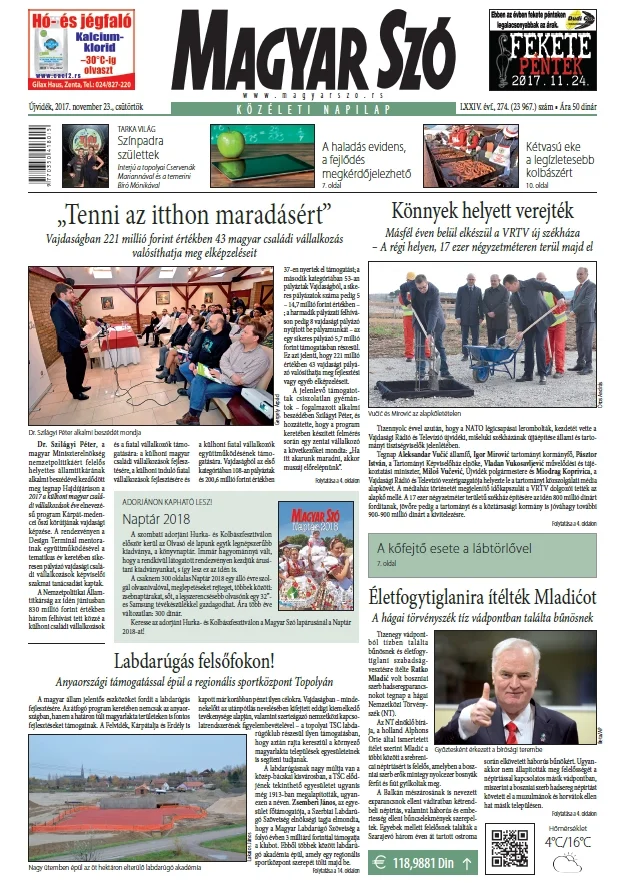 Magyar Szó, 74. évf. 2017. november 23. 274. sz. 1–20. oldal