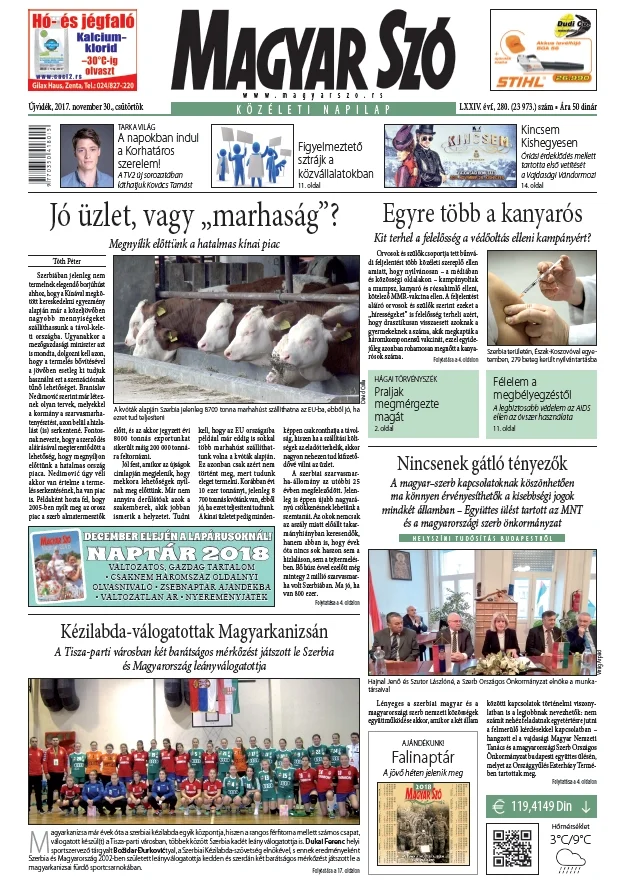 Magyar Szó, 74. évf. 2017. november 30. 280. sz. 1–16. oldal