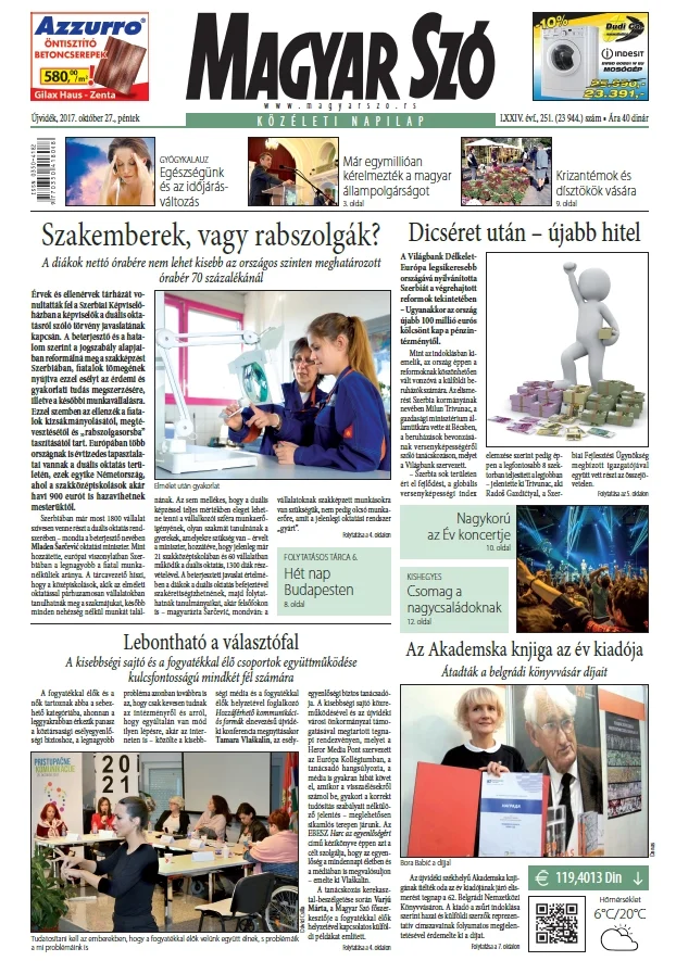 Magyar Szó, 74. évf. 2017. október 27. 251. sz. 1–16. oldal