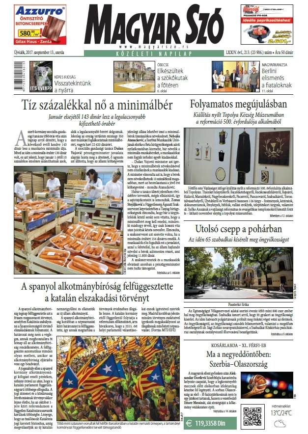 Magyar Szó, 74. évf. 2017. szeptember 13. 213. sz. 1–16. oldal