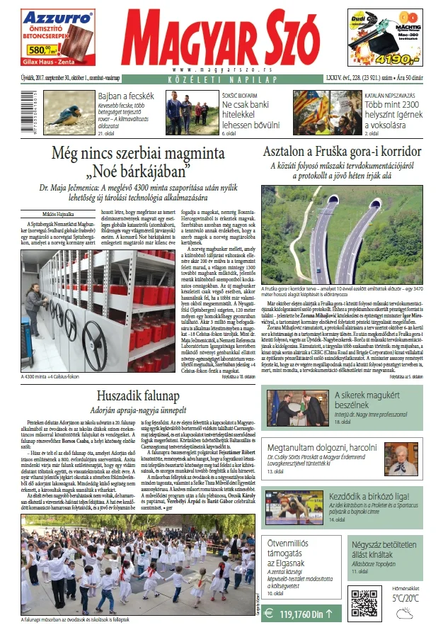 Magyar Szó, 74. évf. 2017. szeptember 30. – október 1. 228. sz. 1–32. oldal