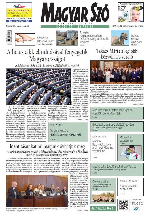 Magyar Szó, 75. évf. 2018. április 13. 84. sz. 1–16. oldal