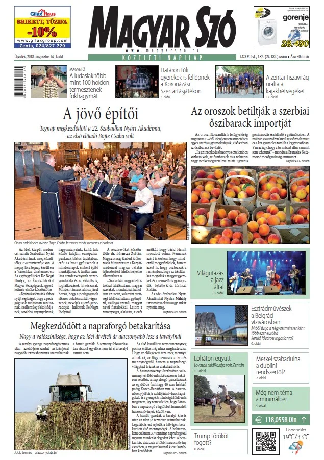 Magyar Szó, 75. évf. 2018. augusztus 14. 187. sz. 1–20. oldal