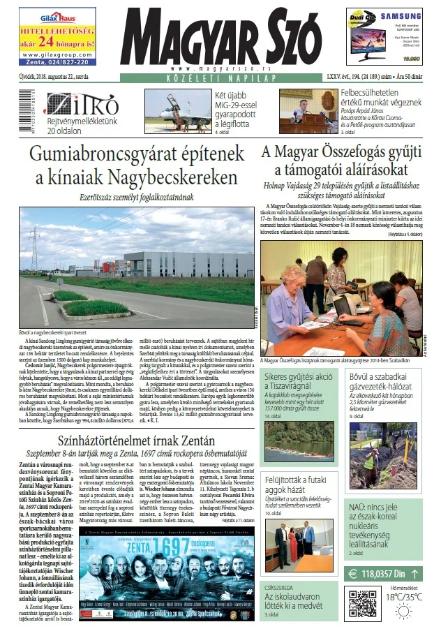 Magyar Szó, 75. évf. 2018. augusztus 22. 194. sz. 1–16. oldal