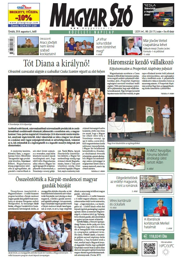 Magyar Szó, 75. évf. 2018. augusztus 6. 180. sz. 1–20. oldal