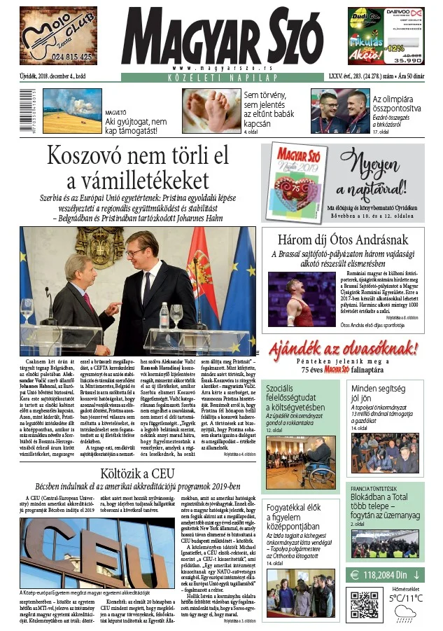 Magyar Szó, 75. évf. 2018. december 4. 283. sz. 1–20. oldal