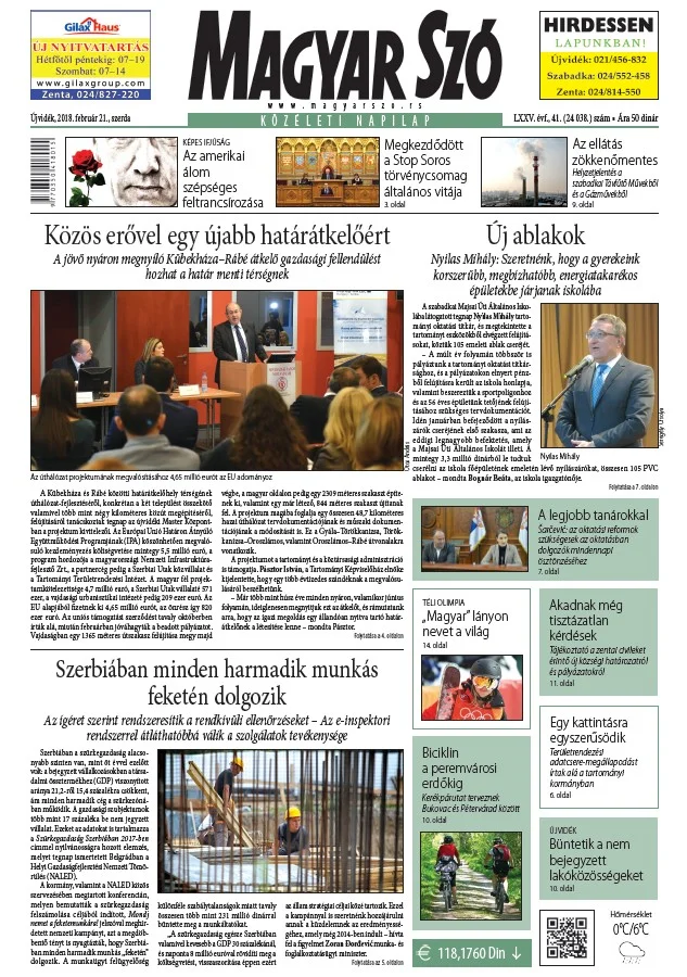 Magyar Szó, 75. évf. 2018. február 21. 41. sz. 1–16. oldal