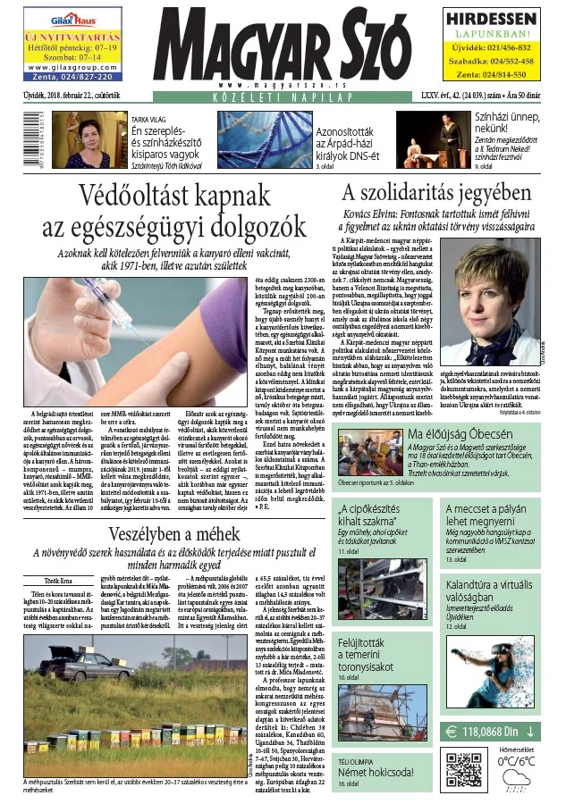 Magyar Szó, 75. évf. 2018. február 22. 42. sz. 1–20. oldal