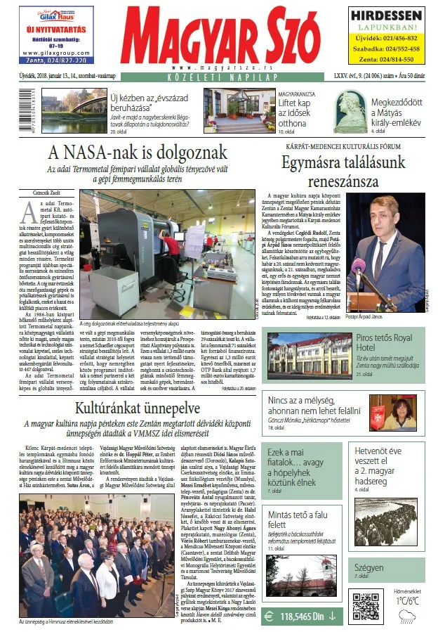 Magyar Szó, 75. évf. 2018. január 13. – 14. 9. sz. 1–42. oldal