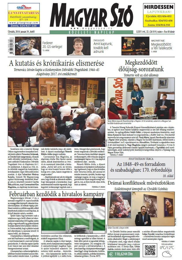Magyar Szó, 75. évf. 2018. január 29. 22. sz. 1–20. oldal