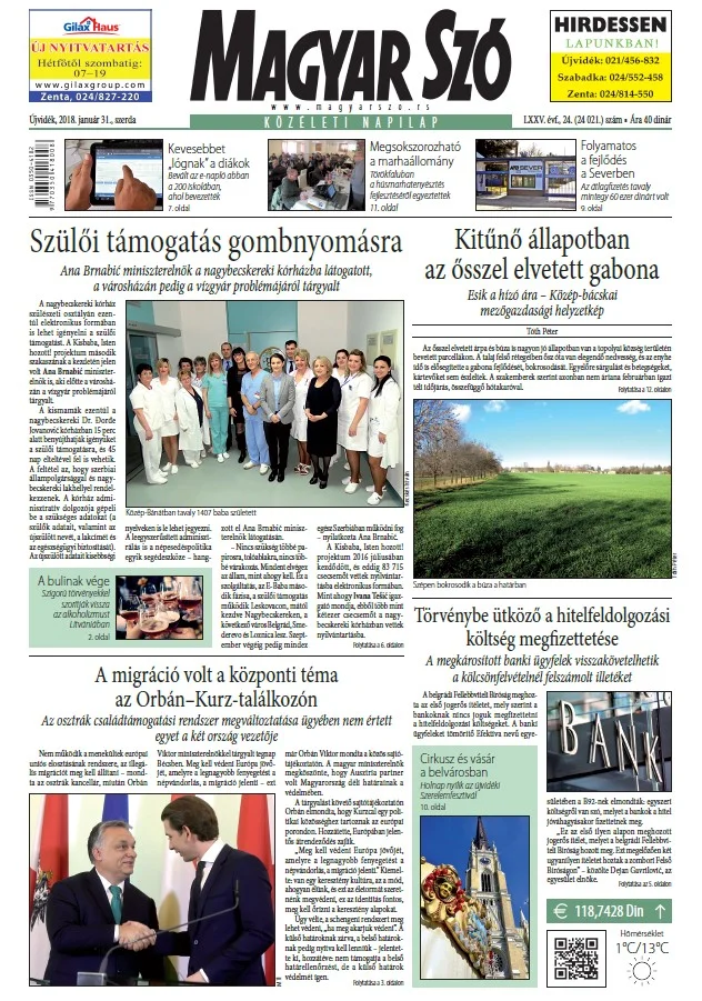 Magyar Szó, 75. évf. 2018. január 31. 24. sz. 1–16. oldal