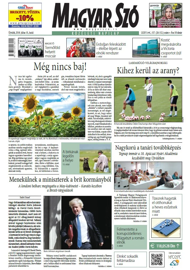 Magyar Szó, 75. évf. 2018. július 10. 157. sz. 1–20. oldal