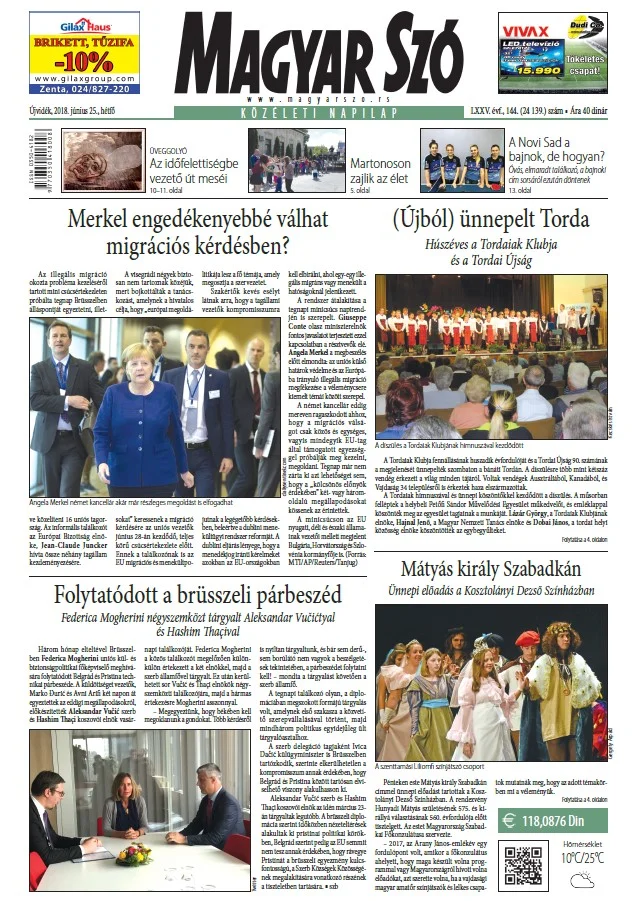 Magyar Szó, 75. évf. 2018. június 25. 144. sz. 1–20. oldal