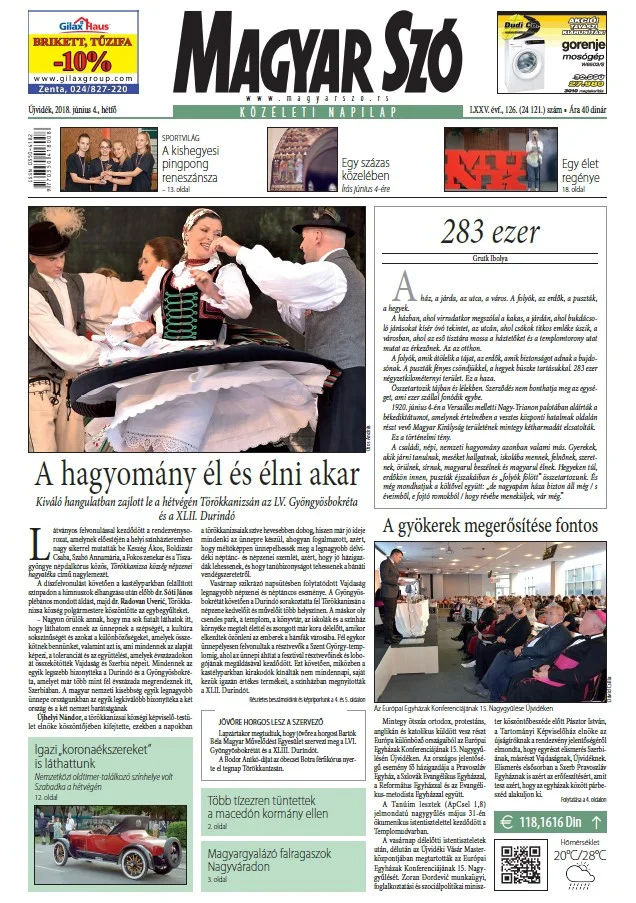 Magyar Szó, 75. évf. 2018. június 4. 126. sz. 1–20. oldal