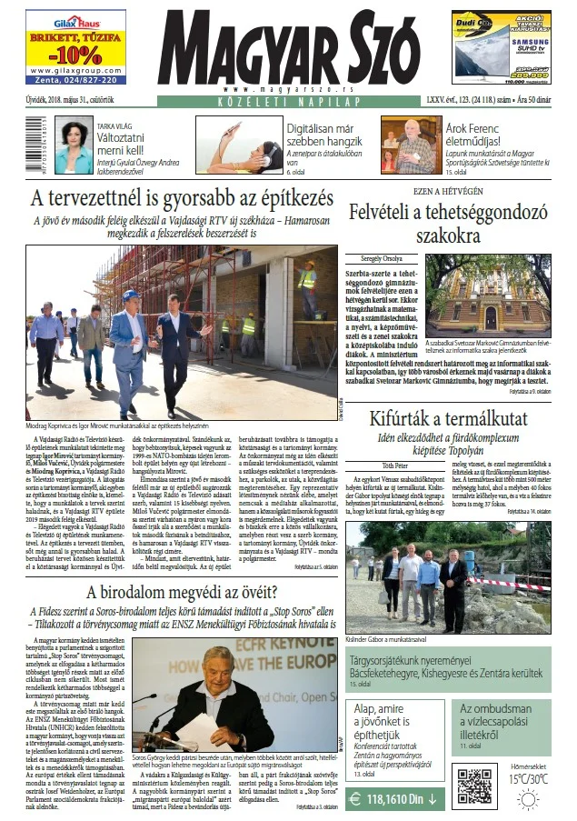 Magyar Szó, 75. évf. 2018. május 31. 123. sz. 1–20. oldal