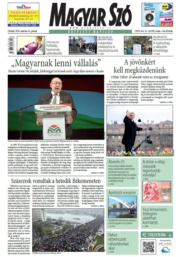 Magyar Szó, 75. évf. 2018. március 16. 61. sz. 1–16. oldal