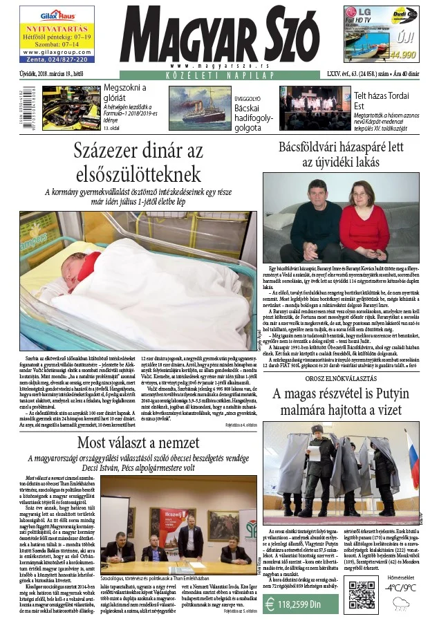 Magyar Szó, 75. évf. 2018. március 19. 63. sz. 1–20. oldal