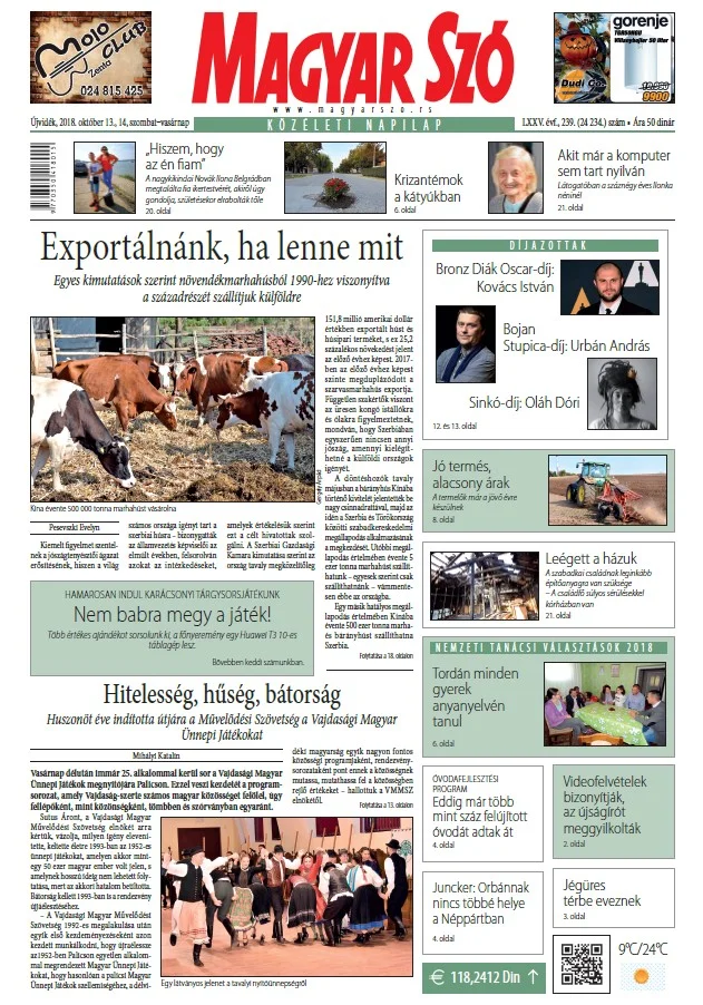 Magyar Szó, 75. évf. 2018. október 13. – 14. 239. sz. 1–42. oldal
