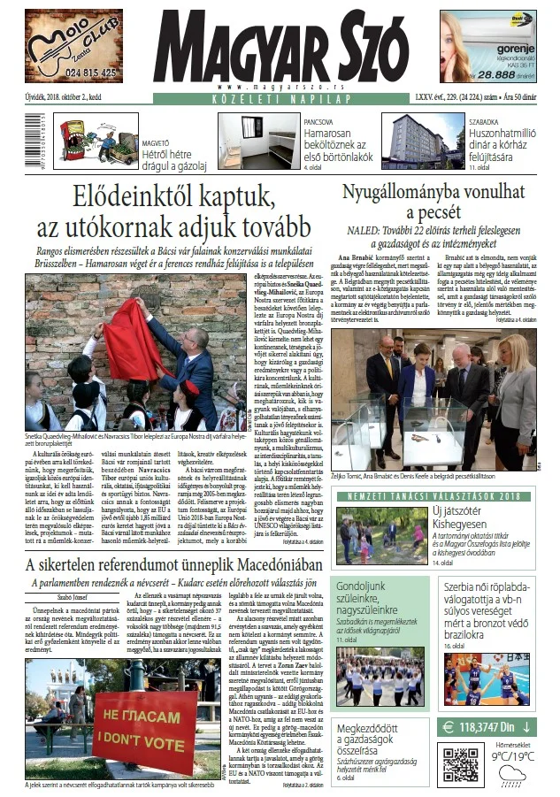 Magyar Szó, 75. évf. 2018. október 2. 229. sz. 1–20. oldal