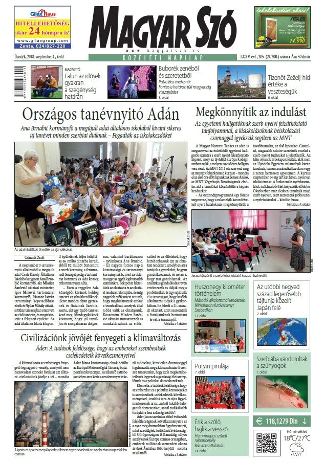 Magyar Szó, 75. évf. 2018. szeptember 4. 205. sz. 1–20. oldal