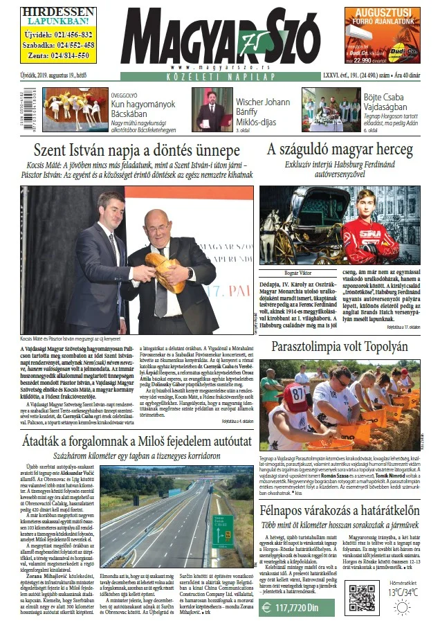 Magyar Szó, 76. évf. 2019. augusztus 19. 191. sz. 1–20. oldal