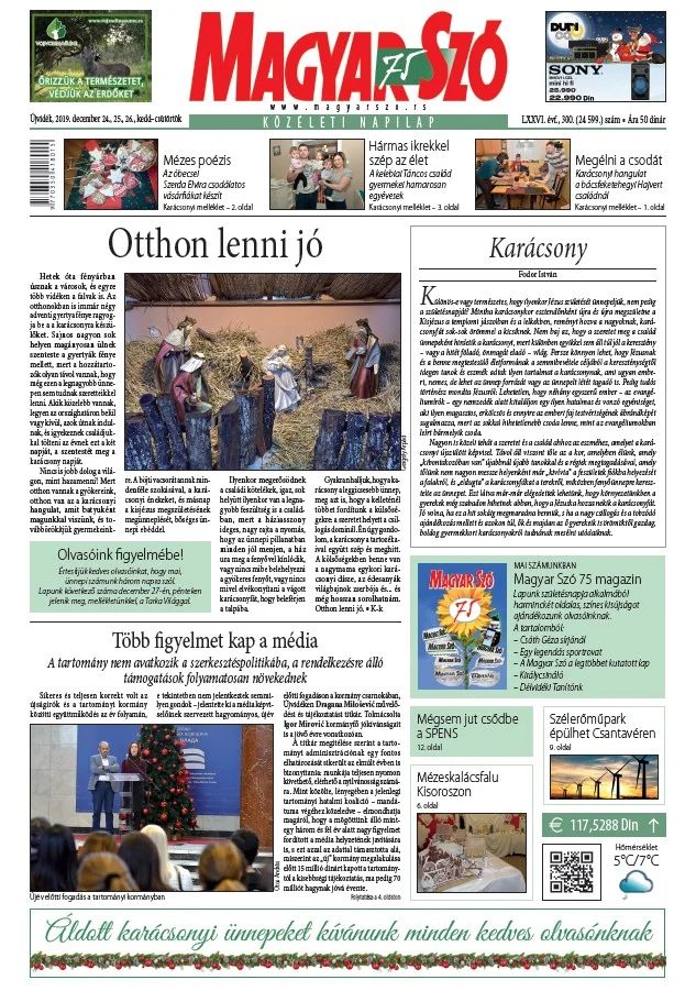 Magyar Szó, 76. évf. 2019. december 24. – 26. 300. sz. 1–20. oldal