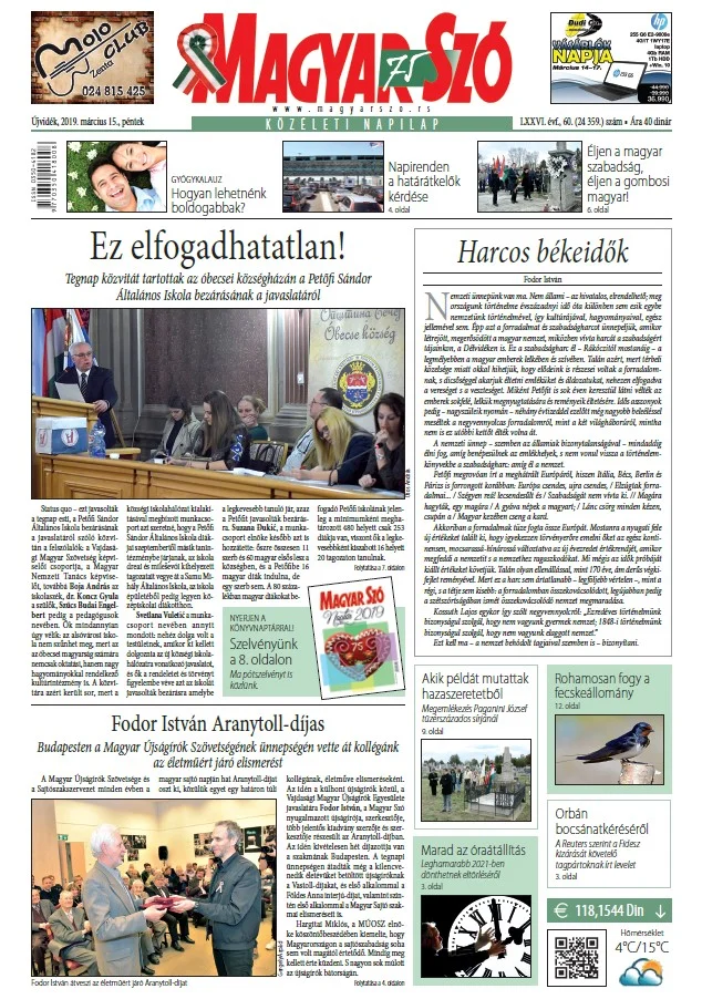 Magyar Szó, 76. évf. 2019. március 15. 60. sz. 1–16. oldal