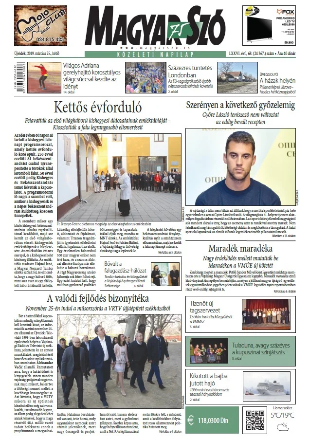 Magyar Szó, 76. évf. 2019. március 25. 68. sz. 1–20. oldal
