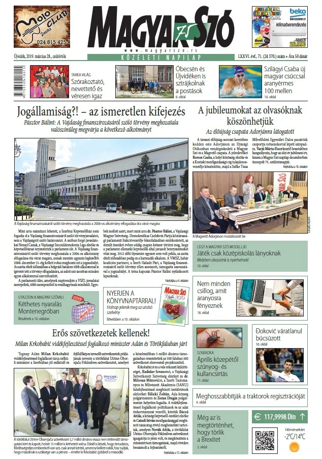 Magyar Szó, 76. évf. 2019. március 28. 71. sz. 1–20. oldal