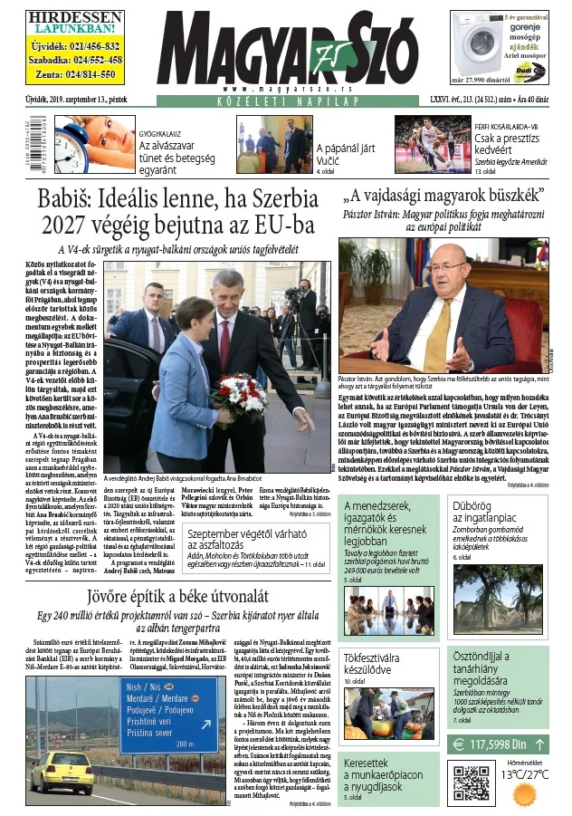 Magyar Szó, 76. évf. 2019. szeptember 13. 213. sz. 1–16. oldal
