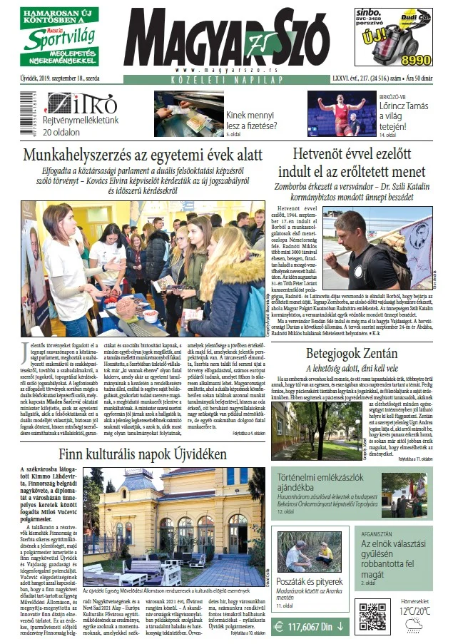 Magyar Szó, 76. évf. 2019. szeptember 18. 217. sz. 1–16. oldal
