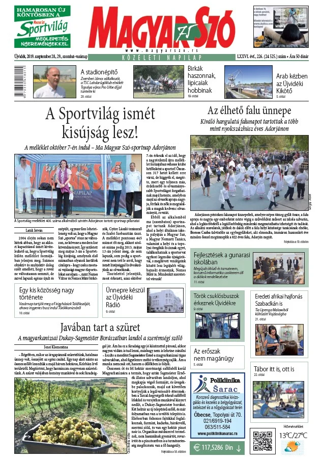 Magyar Szó, 76. évf. 2019. szeptember 28. – 29. 226. sz. 1–44. oldal