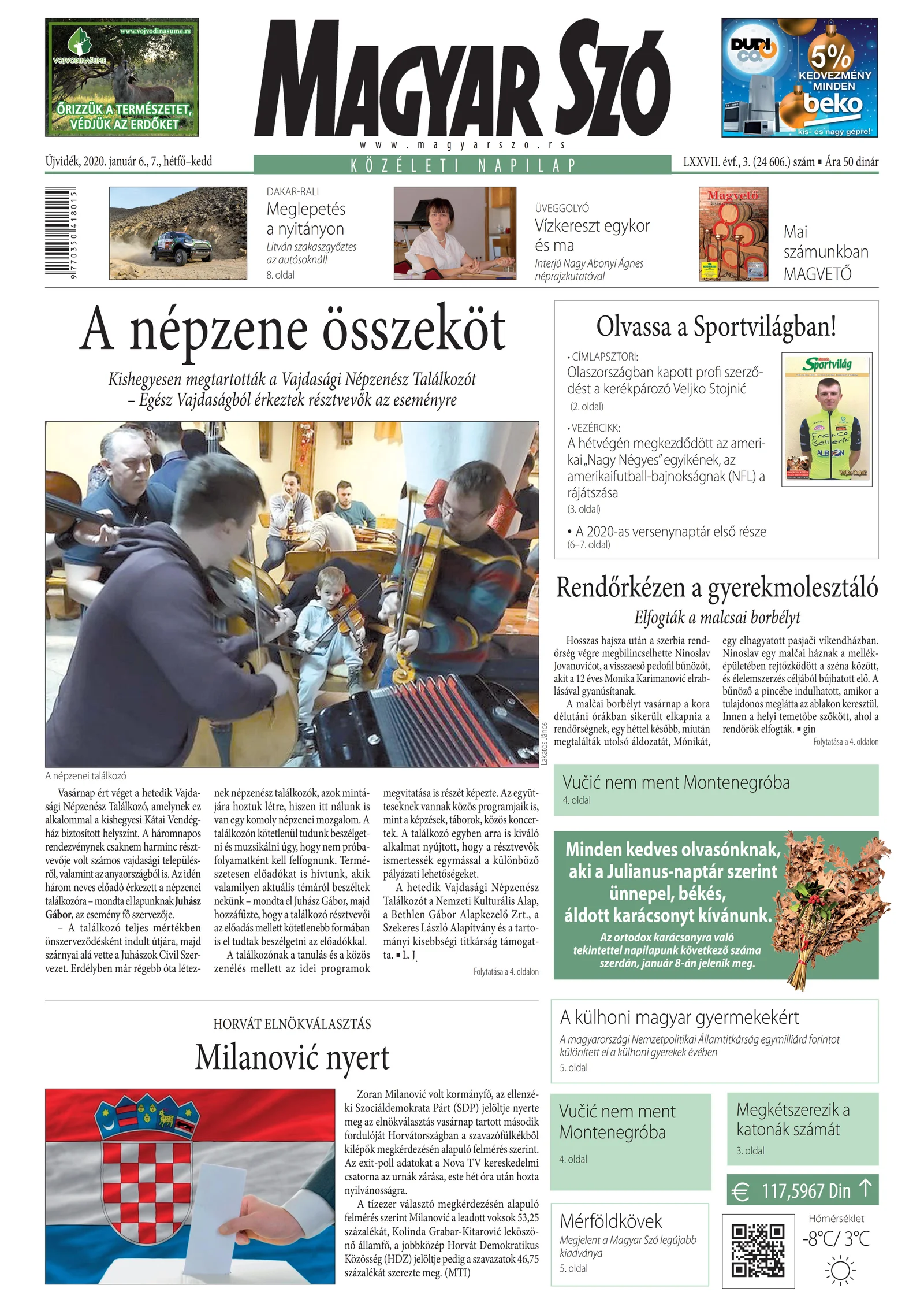 Magyar Szó, 77. évf. 2020. január 6. – 7. 3. sz. 1. oldal
