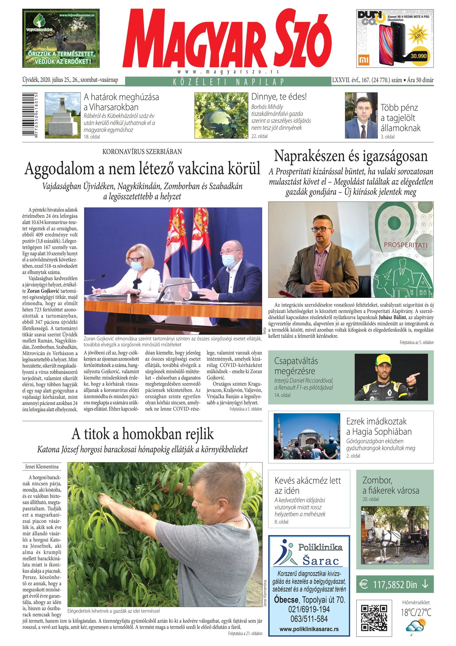 Magyar Szó, 77. évf. 2020. július 25. – 26. 167. sz. 1–32. oldal