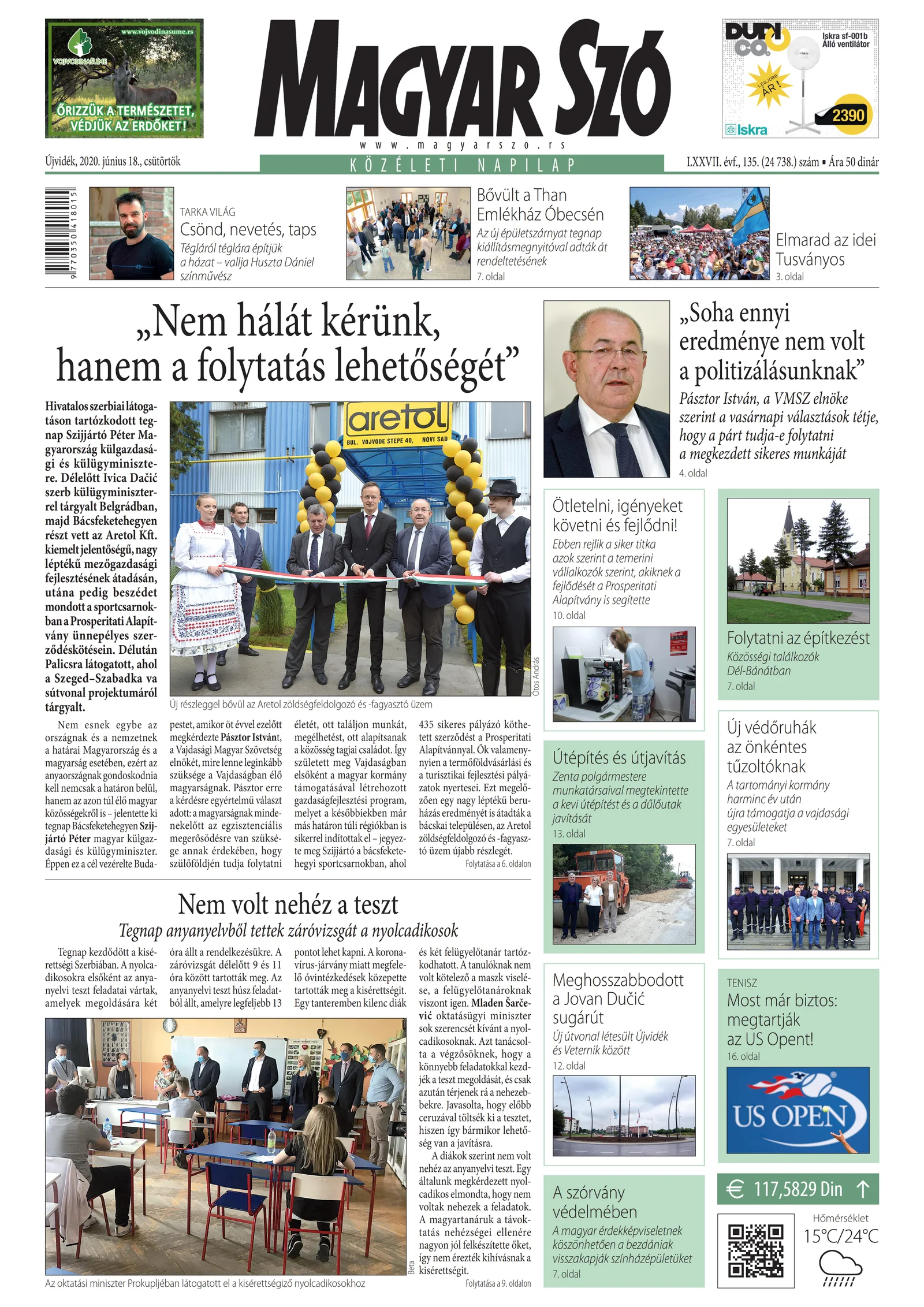 Magyar Szó, 77. évf. 2020. június 18. 135. sz. 1–20. oldal