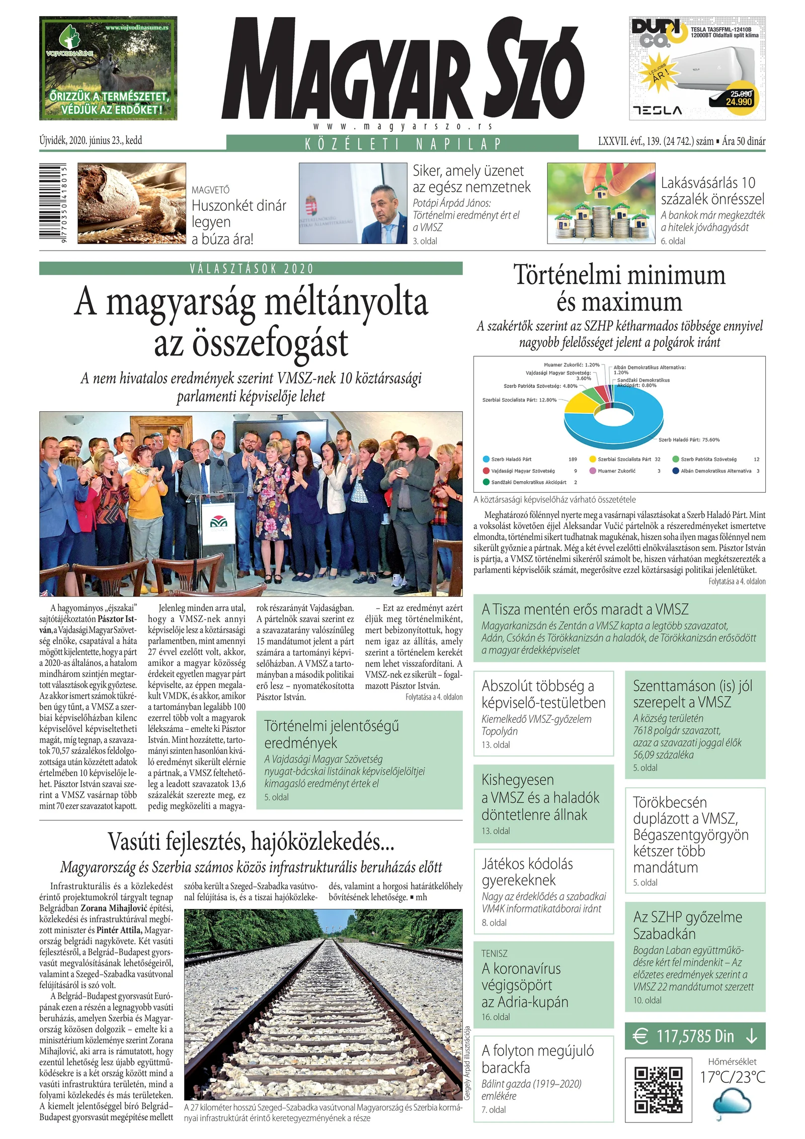 Magyar Szó, 77. évf. 2020. június 23. 139. sz. 1–20. oldal
